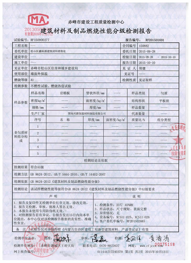 >>>建筑材料及制品燃燒分級(jí)檢測(cè)報(bào)告.